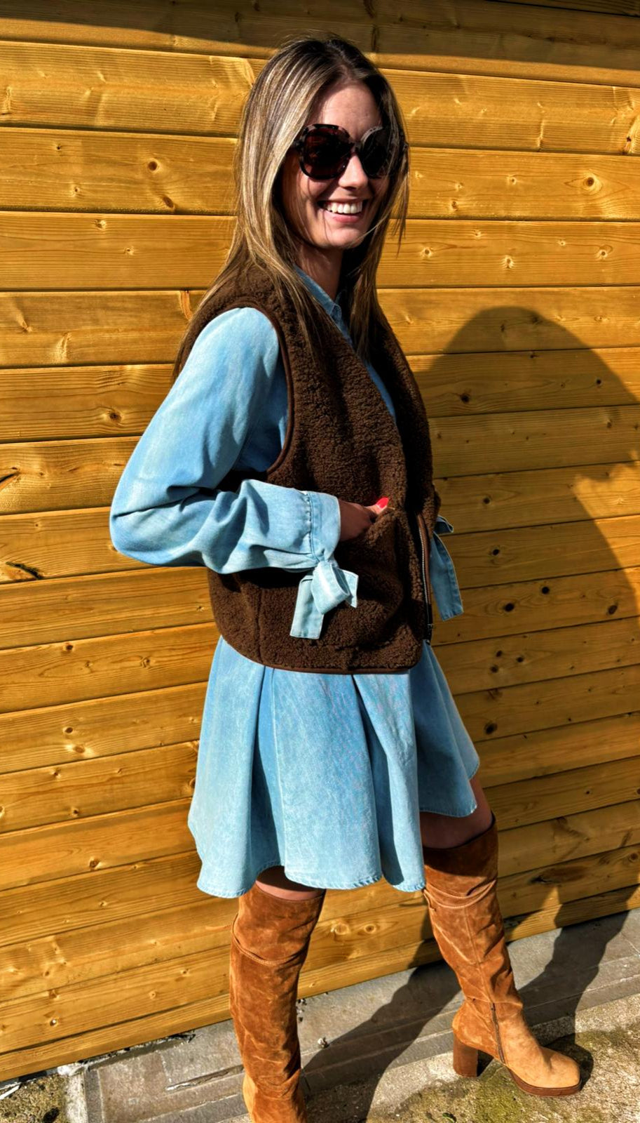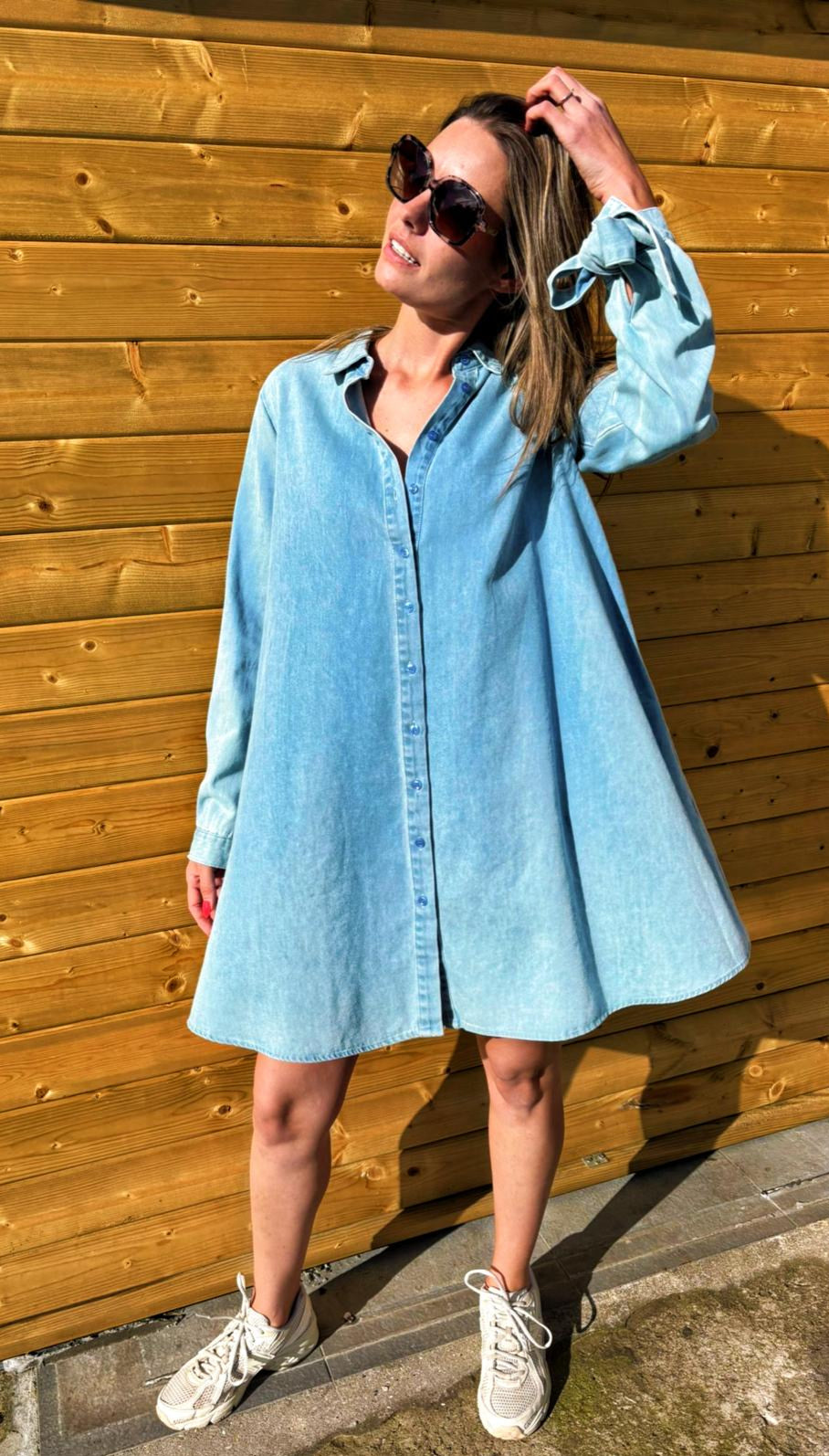 Ga voor een casual en trendy look met deze stijlvolle denim overhemdjurk. Gemaakt van een zachte, lichtblauwe jeansstof, combineert dit kleed moeiteloos comfort met mode. Milou is een veelzijdig item dat je moeiteloos het hele jaar door kunt dragen. De losvallende pasvorm zorgt voor een relaxte look, terwijl de klassieke kraag en knoopsluiting het geheel een verfijnde touch geven.