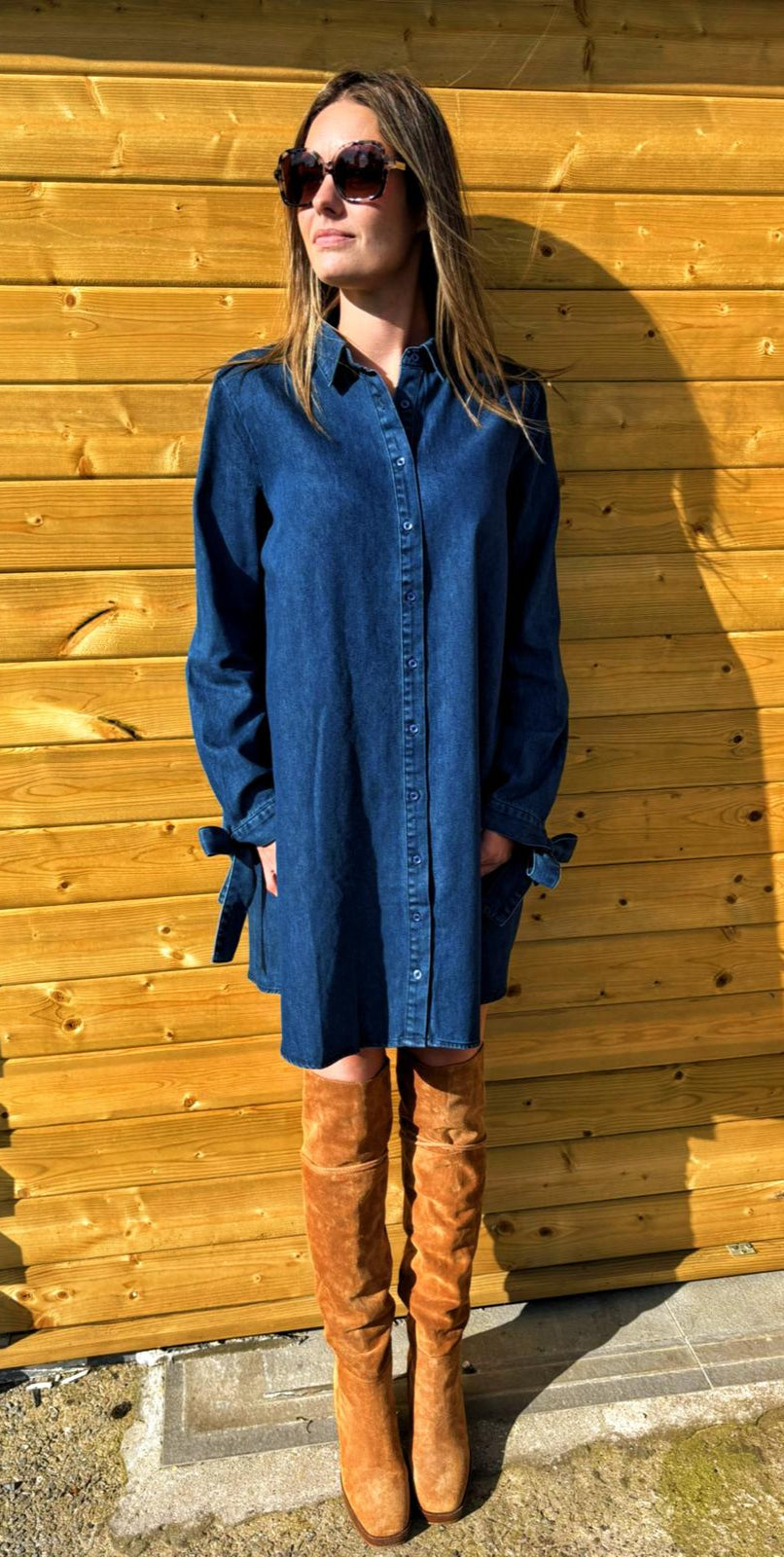 Ga voor een casual en trendy look met deze stijlvolledenim overhemdjurk. Gemaakt van een zachte, lichtblauwe jeansstof, combineert dit kleed moeiteloos comfort met mode. Milou is een veelzijdig item dat je moeiteloos het hele jaar door kunt dragen. De losvallende pasvorm zorgt voor een relaxte look, terwijl de klassieke kraag en knoopsluiting het geheel een verfijnde touch geven.