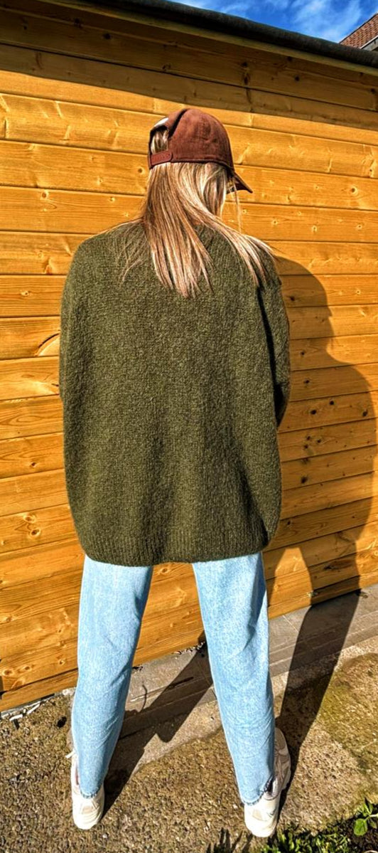 Voeg een pop of color toe aan je garderobe met deze opvallende kaki trui 🪖. Gemaakt van een zachte, pluizige knit stof, biedt deze trui zowel comfort als stijl. De relaxed fit, verlaagde schoudernaden en iets langere achterkant zorgen voor een nonchalante, trendy look. Perfect te combineren met een jeans of een speelse printbroek voor een fashionable herfst- of winteroutfit.