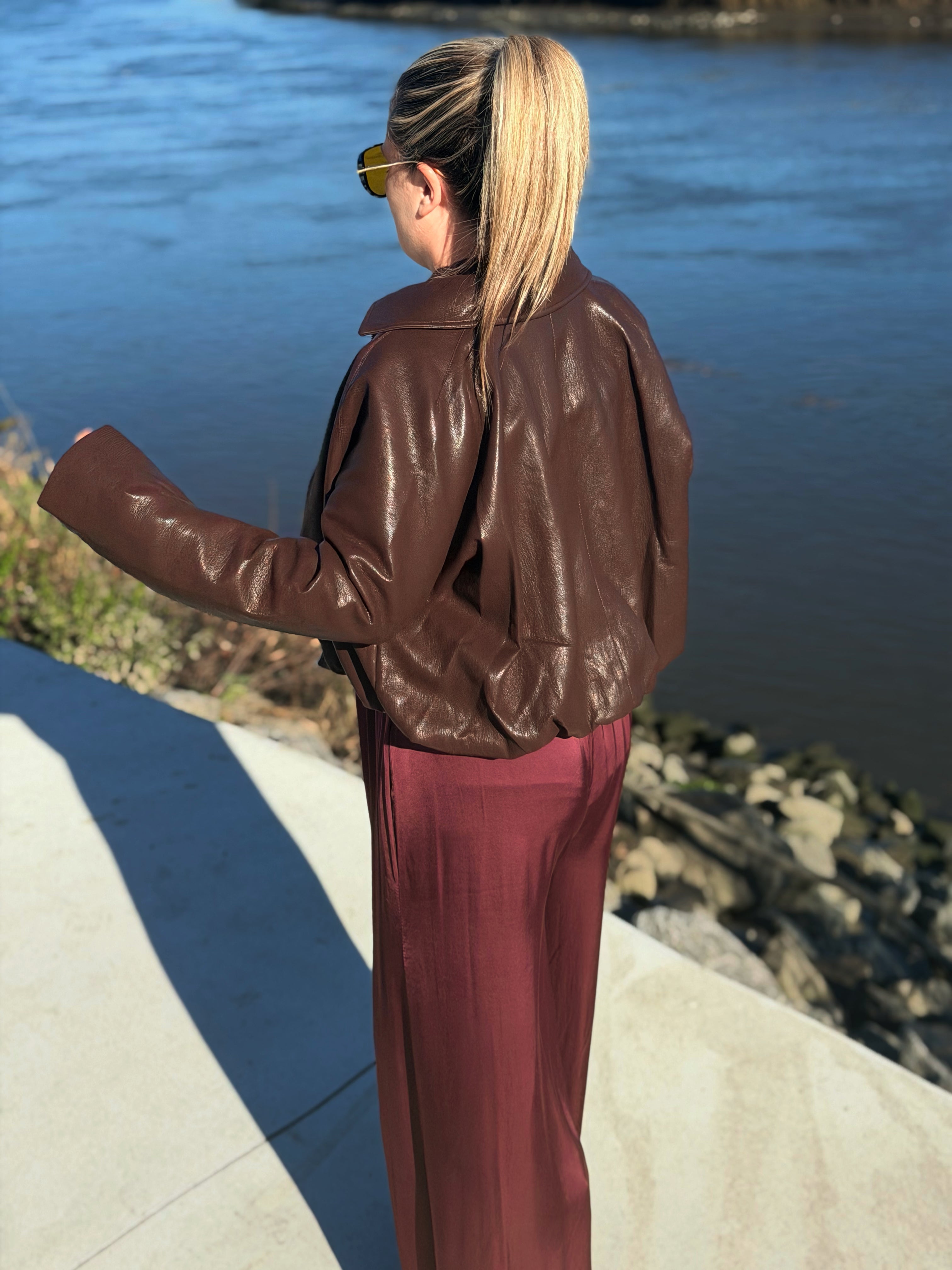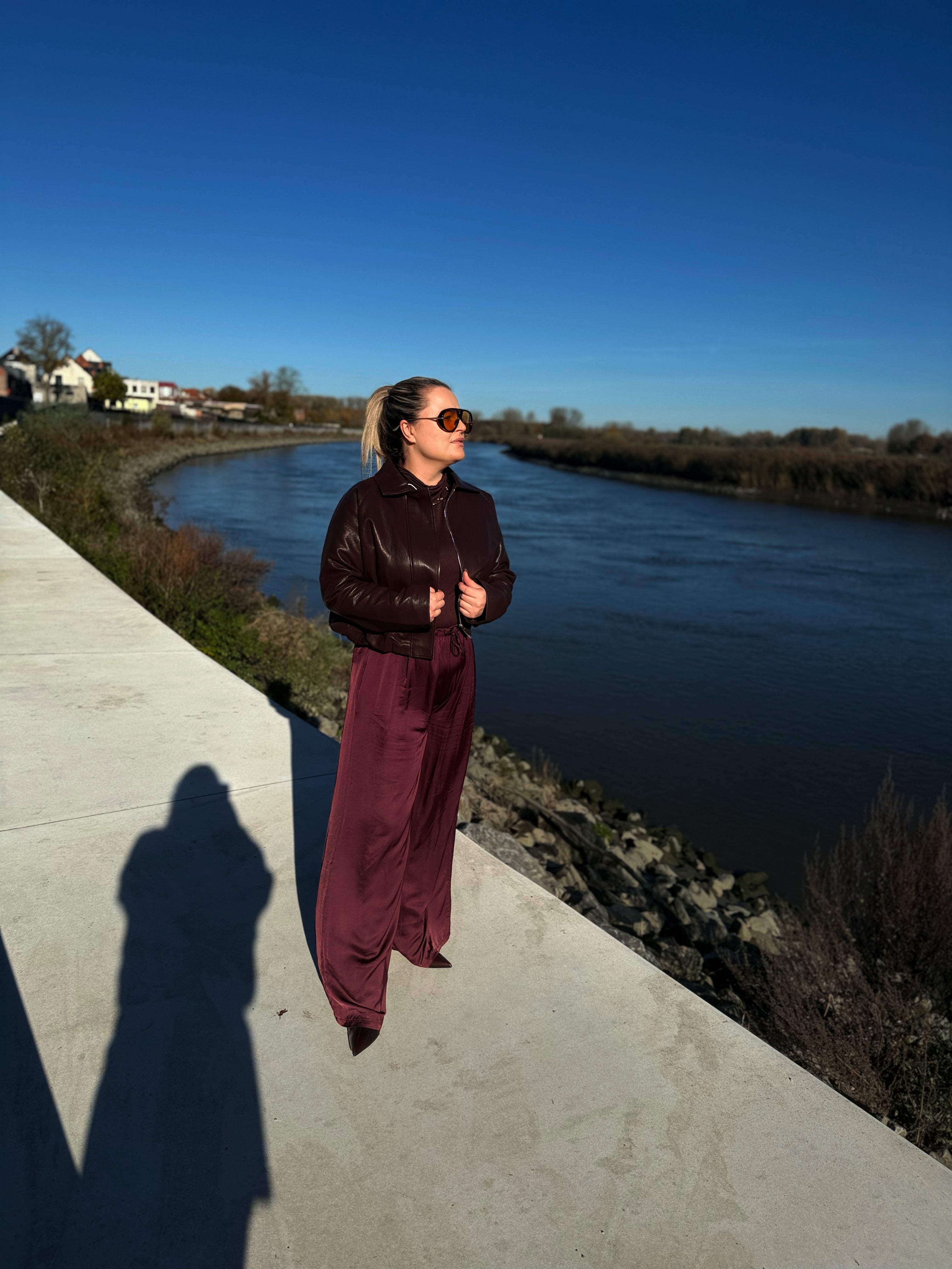 Onze Benny Merlot Satin Pants zijn de perfecte mix van comfort en klasse. De satijnen stof met subtiele glans geeft je look meteen een luxueuze feel, terwijl de wide leg fit zorgt voor een moeiteloos silhouet. De diepe merlotkleur maakt deze broek een echte eyecatcher โ stijlvol, krachtig en toch easy to wear.